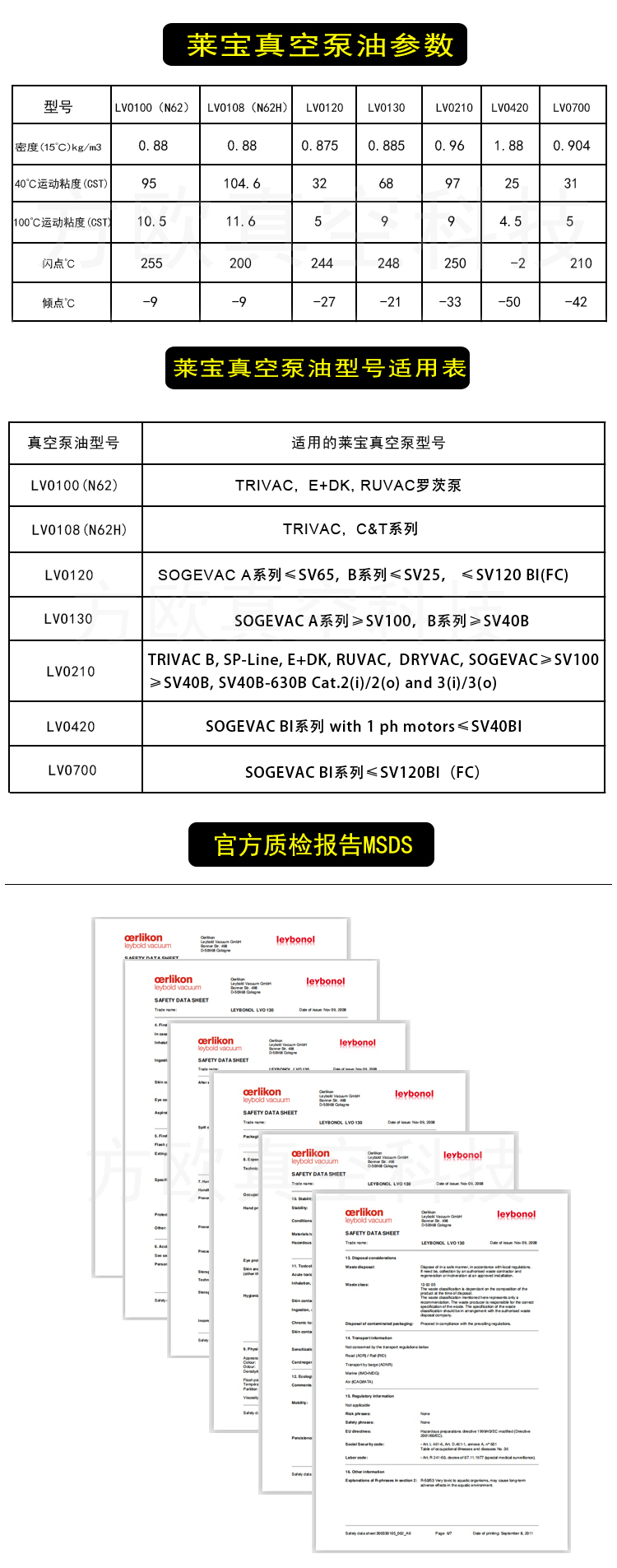 名 稱: 萊寶真空泵油LVO100 LVO130 LVO120 LVO108 LVO210 LVO420 LVO700